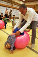 「発達を促すベビーマッサージ」後の動きが活発になったお子様とこの時期の発達に必要な運動を一緒に行うベビーヨガです。